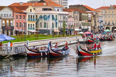 Aveiro je známé jako „Portugalské Benátky“ díky systému kanálů a lodí podobným Benátkám v Itálii.